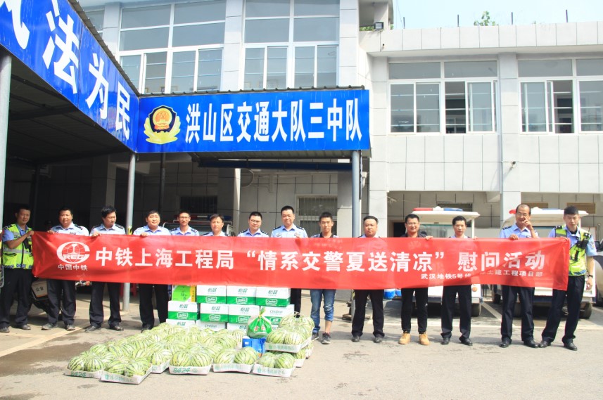 入夏以來,武漢天氣日益炎熱。6月13日上午,武漢地鐵5號線1標項目部到武漢市洪山區交通大隊三中隊,開展了“情系交警 夏送清涼”慰問活動。